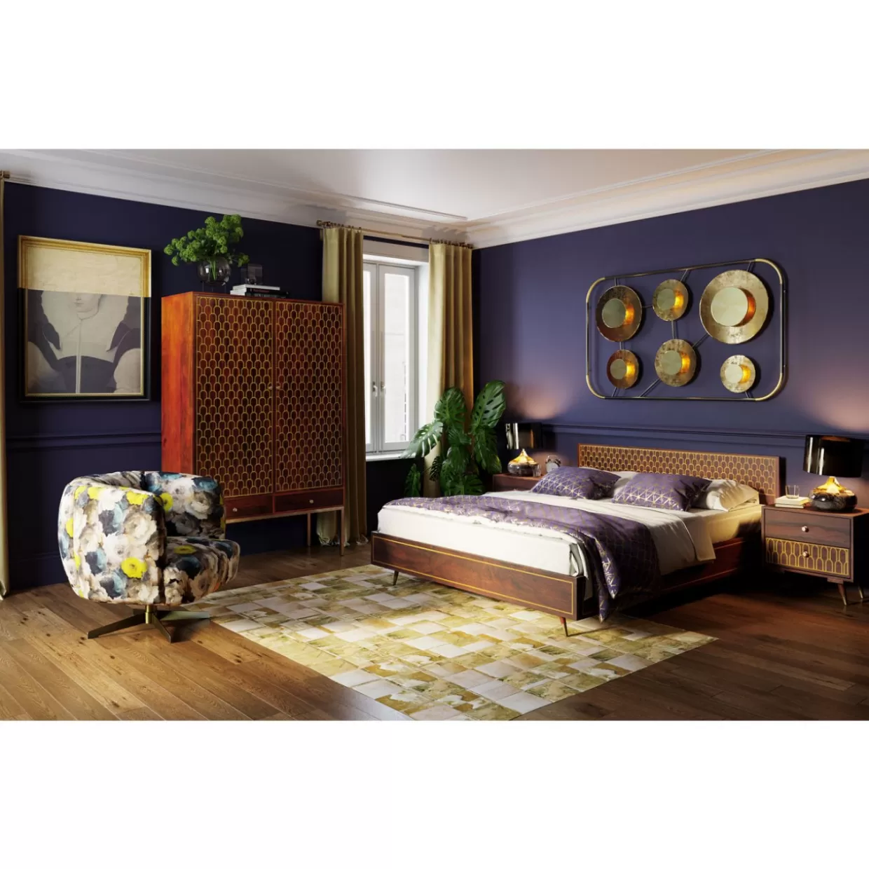 - Elegantes Design: Das Bett Prasentiert Sich Im Art-Deco-Stil Mit Hochgezogenem Kopfteil Und Goldenen Akzenten