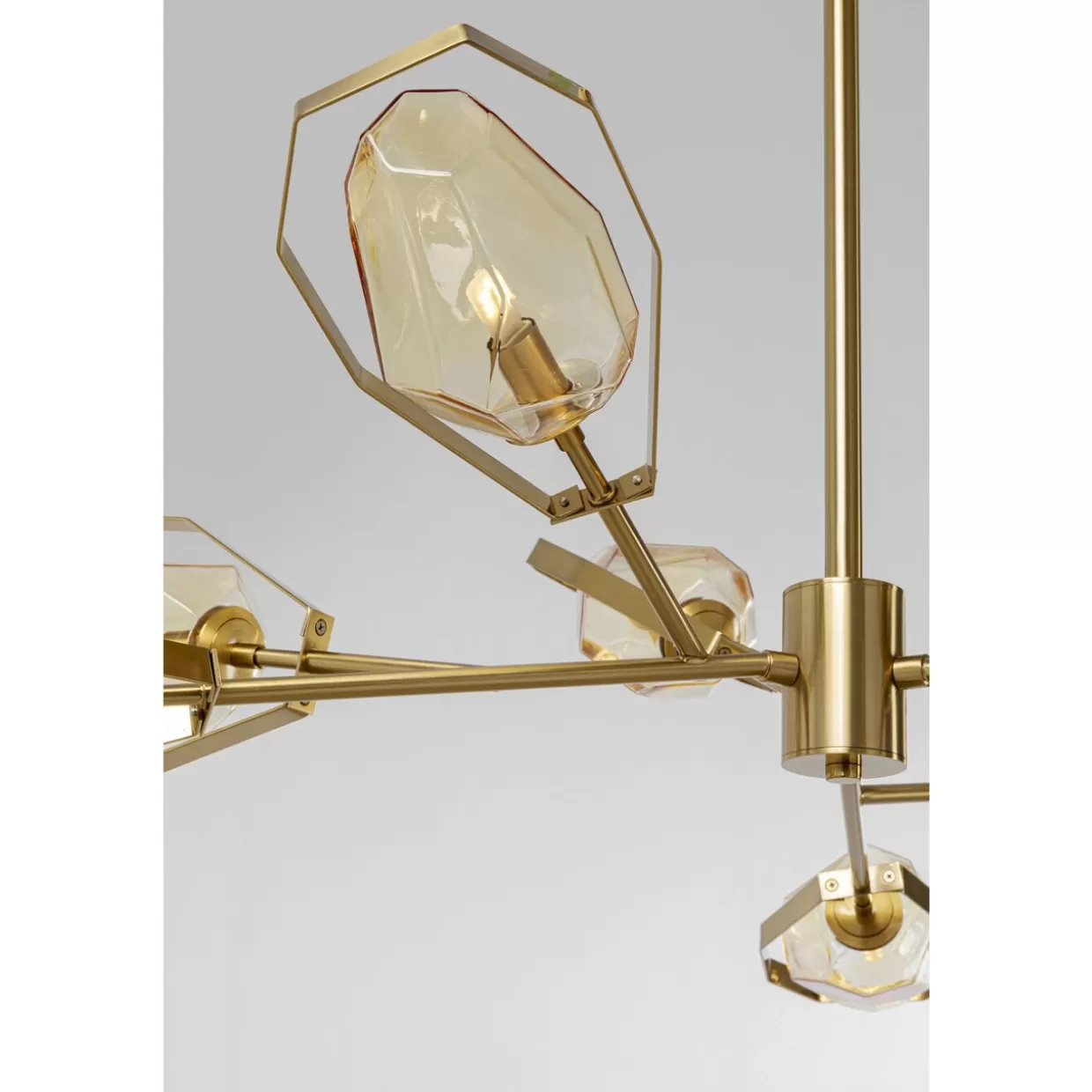 Hangelampe In Gold Mit 8 Armen,130 X 42 X 42 Zentimeter (H/B/T)Exklusive Glasschirme In Form Von Rohdiamanten In Beige H…