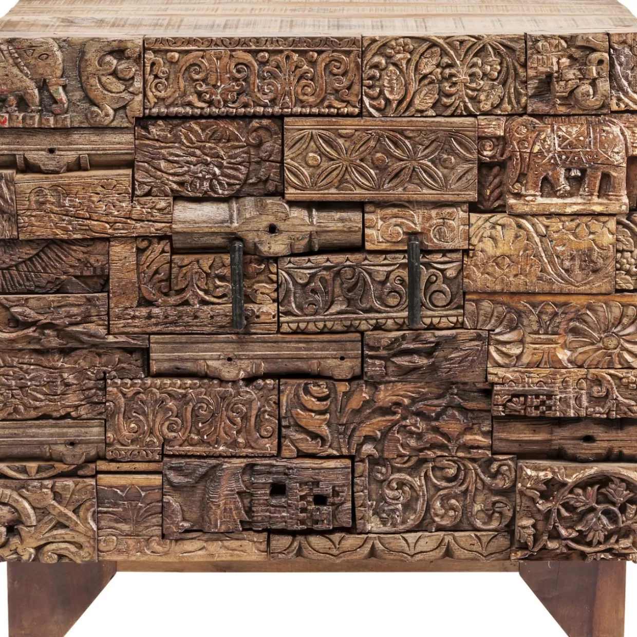 - Rechteckige,Kompakte Kommode Aus Mango-Massivholz Mit Handgeschnitzten Ornamenten