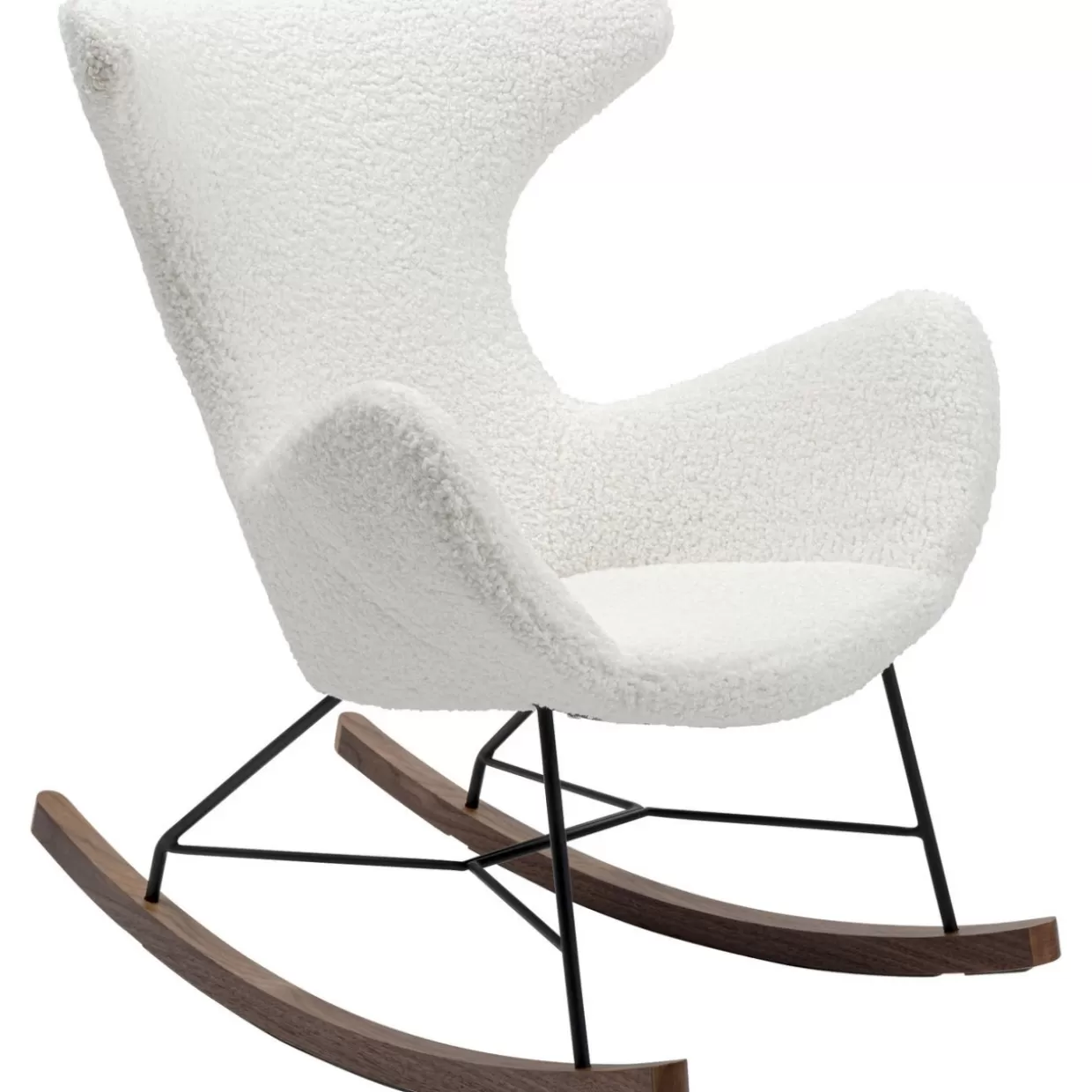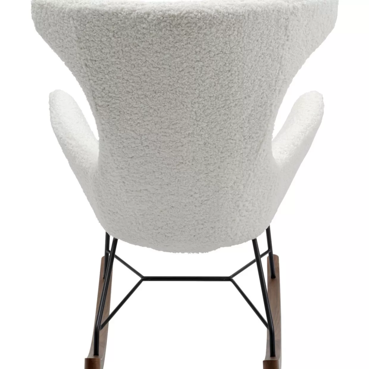 - Gemutlicher Schaukelsessel Mit Flauschigem,Naturweisem Bezug,Modernem Gestell Aus Stahl Und Kufen Mit Feinem Walnuss-Furnier