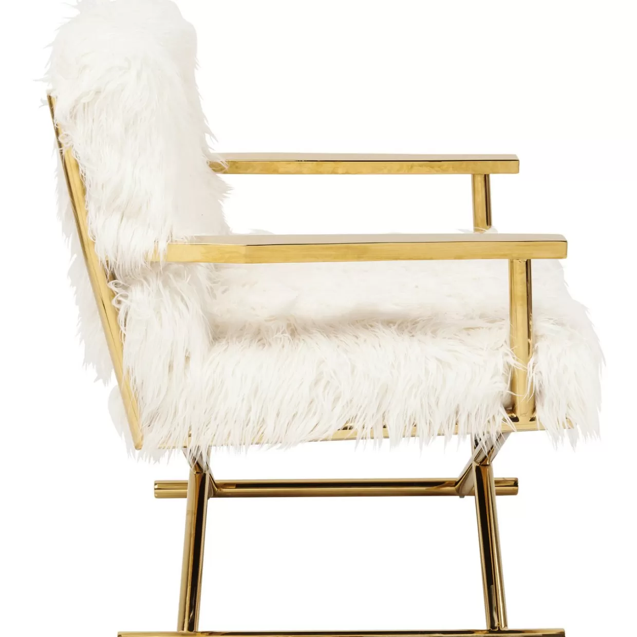 - Armlehnstuhl Mit Goldfarbenem Gestell Und Armlehnen,Den Sein Kuscheliger,Weiser Kunstfellbezug Zum Vip Im Wohnzimmer Macht