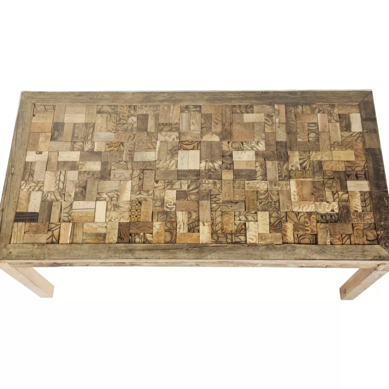 - Handgefertigtes Masterpiece: Einzigartige Tischplatte Aus Holz Mit Schnitzereien,Die Durch Indisches Kunsthandwerk Inspiriert Sind. Jedes Stuck Ein Unikat