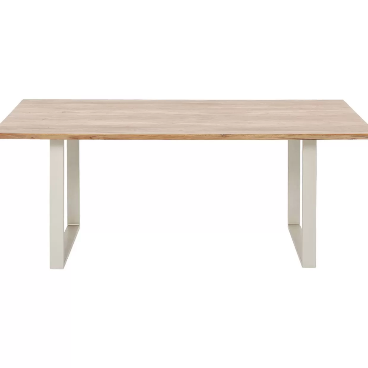 - Rechteckiger Holztisch Mit Stahlkufengestell In Lassigem Silberton. Massive Akazienholzplatte Mit Naturlich Geformter Langskante