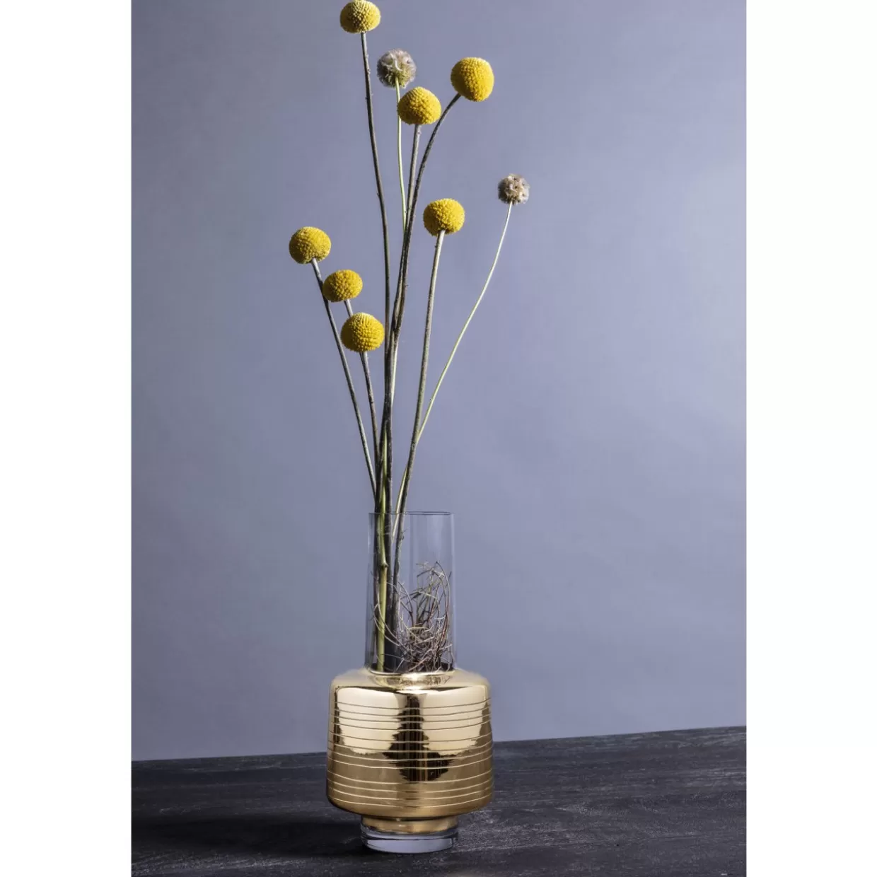 Schmale,Hohe Blumenvase In Spannendem Designmix Aus Glas Und Goldfarbenen AkzentenBringt Fullige Blutenschonheiten Wie P…